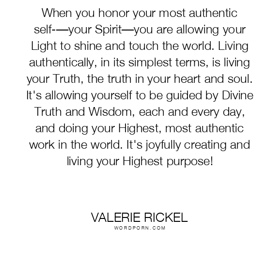 When you honor your most authentic self-—your Spirit—you are allowing your Light to shine and touch the world. Living authentically, in its simplest terms, is living your Truth, the truth in your heart and soul. It's allowing yourself to be guided by Divine Truth and Wisdom, each and every day, and doing your Highest, most authentic work in the world. It's joyfully creating and living your Highest purpose!