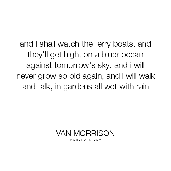 and I shall watch the ferry boats, and they'll get high, on a bluer ocean against tomorrow's sky. and i will never grow so old again, and i will walk and talk, in gardens all wet with rain