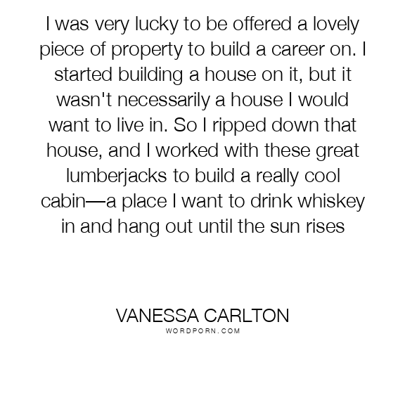 I was very lucky to be offered a lovely piece of property to build a career on. I started building a house on it, but it wasn't necessarily a house I would want to live in. So I ripped down that house, and I worked with these great lumberjacks to build a really cool cabin—a place I want to drink whiskey in and hang out until the sun rises