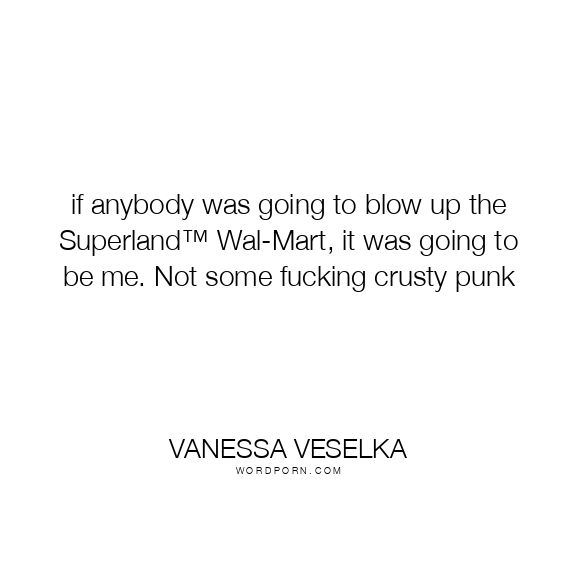 if anybody was going to blow up the Superland™ Wal-Mart, it was going to be me. Not some fucking crusty punk