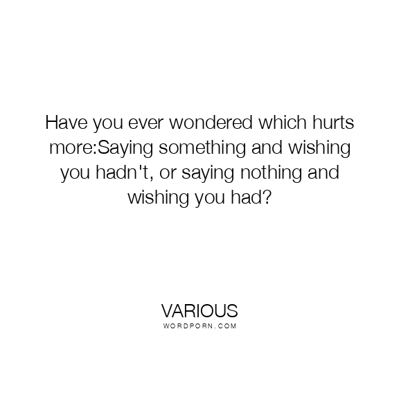 Have you ever wondered which hurts more:Saying something and wishing you hadn't, or saying nothing and wishing you had?