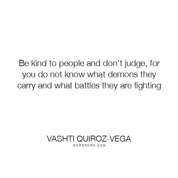 Be kind to people and don’t judge, for you do not know what demons they carry and what battles they are fighting