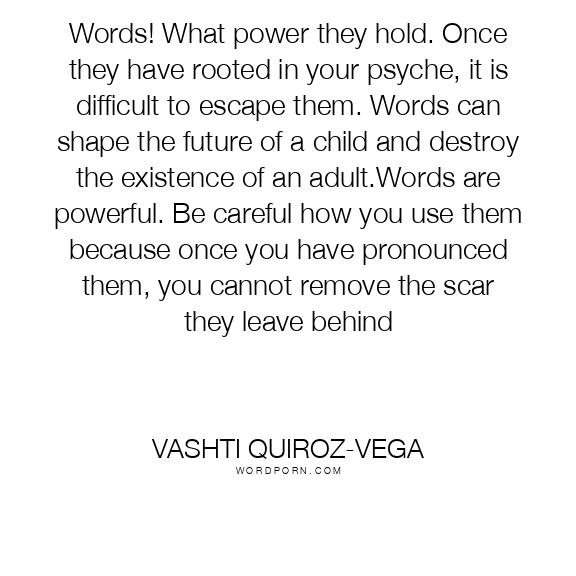Words! What power they hold. Once they have rooted in your psyche, it is difficult to escape them. Words can shape the future of a child and destroy the existence of an adult.Words are powerful. Be careful how you use them because once you have pronounced them, you cannot remove the scar they leave behind