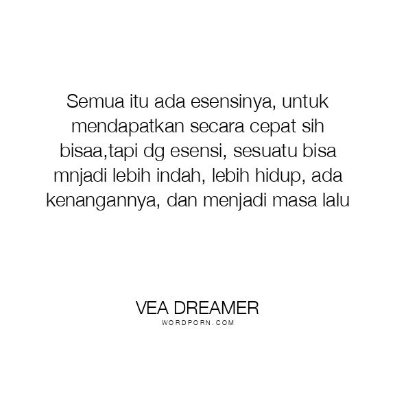 Semua itu ada esensinya, untuk mendapatkan secara cepat sih bisaa,tapi dg esensi, sesuatu bisa mnjadi lebih indah, lebih hidup, ada kenangannya, dan menjadi masa lalu