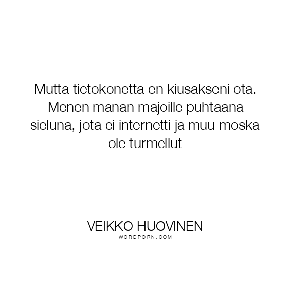 Copy Image Mutta tietokonetta en kiusakseni ota. Menen manan majoille puhtaana sieluna, jota ei internetti ja muu moska ole turmellut Moms Typewriter A A SAVE THIS IMAGE