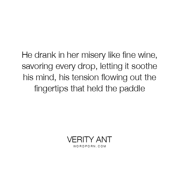 Copy Image He drank in her misery like fine wine, savoring every drop, letting it soothe his mind, his tension flowing out the fingertips that held the paddle Moms Typewriter A A SAVE THIS IMAGE