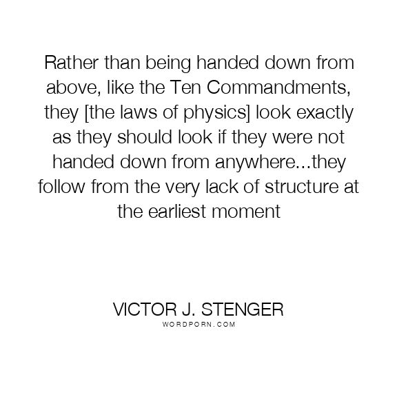 Rather than being handed down from above, like the Ten Commandments, they [the laws of physics] look exactly as they should look if they were not handed down from anywhere...they follow from the very lack of structure at the earliest moment