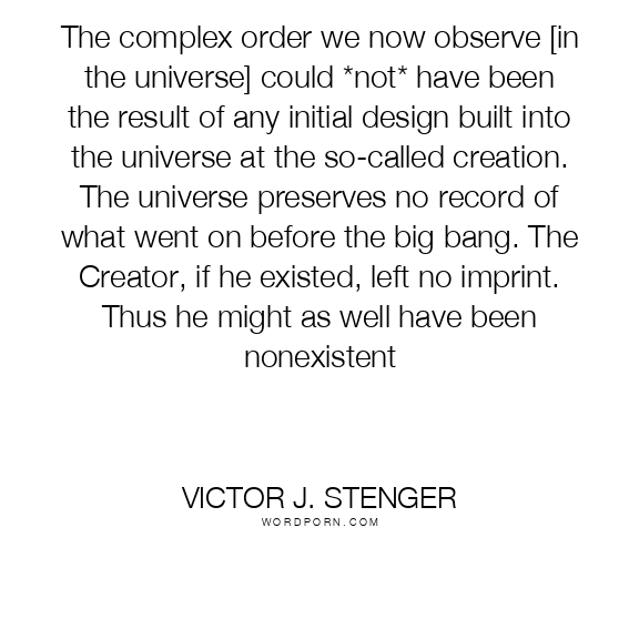 The complex order we now observe [in the universe] could *not* have been the result of any initial design built into the universe at the so-called creation. The universe preserves no record of what went on before the big bang. The Creator, if he existed, left no imprint. Thus he might as well have been nonexistent