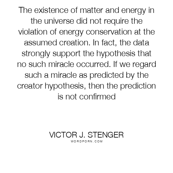 The existence of matter and energy in the universe did not require the violation of energy conservation at the assumed creation. In fact, the data strongly support the hypothesis that no such miracle occurred. If we regard such a miracle as predicted by the creator hypothesis, then the prediction is not confirmed