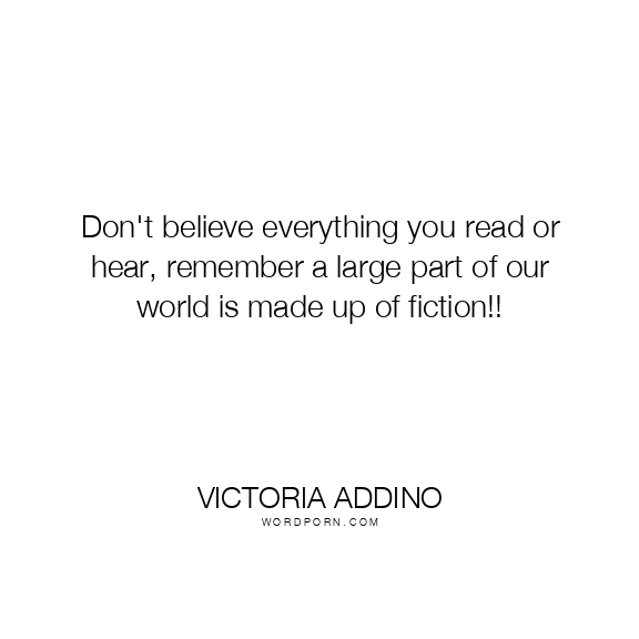 Don't believe everything you read or hear, remember a large part of our world is made up of fiction!!