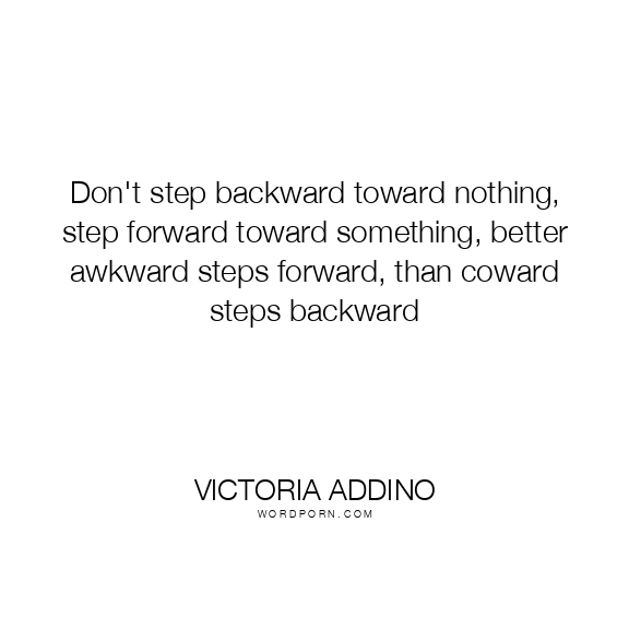 Don't step backward toward nothing, step forward toward something, better awkward steps forward, than coward steps backward