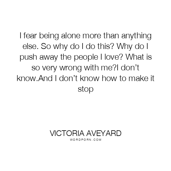 I fear being alone more than anything else. So why do I do this? Why do I push away the people I love? What is so very wrong with me?I don’t know.And I don’t know how to make it stop
