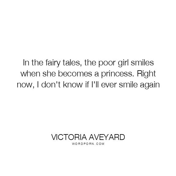 In the fairy tales, the poor girl smiles when she becomes a princess. Right now, I don't know if I'll ever smile again