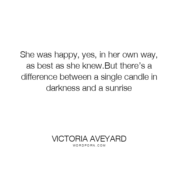 She was happy, yes, in her own way, as best as she knew.But there’s a difference between a single candle in darkness and a sunrise