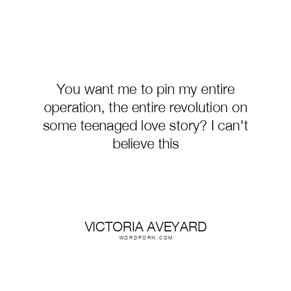 You want me to pin my entire operation, the entire revolution on some teenaged love story? I can't believe this
