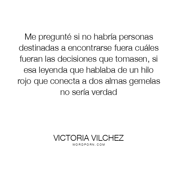 Me pregunté si no habría personas destinadas a encontrarse fuera cuáles fueran las decisiones que tomasen, si esa leyenda que hablaba de un hilo rojo que conecta a dos almas gemelas no sería verdad