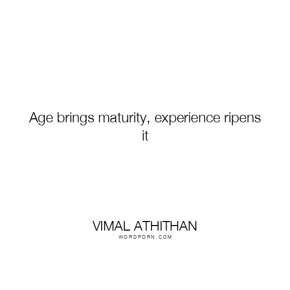 Age brings maturity, experience ripens it