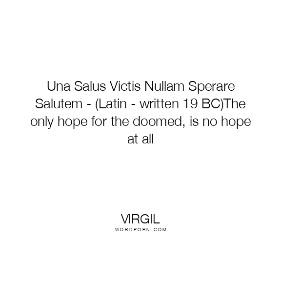 Una Salus Victis Nullam Sperare Salutem - (Latin - written 19 BC)The only hope for the doomed, is no hope at all