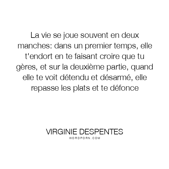 La vie se joue souvent en deux manches: dans un premier temps, elle t'endort en te faisant croire que tu gères, et sur la deuxième partie, quand elle te voit détendu et désarmé, elle repasse les plats et te défonce