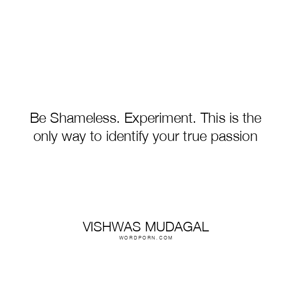 Be Shameless. Experiment. This is the only way to identify your true passion