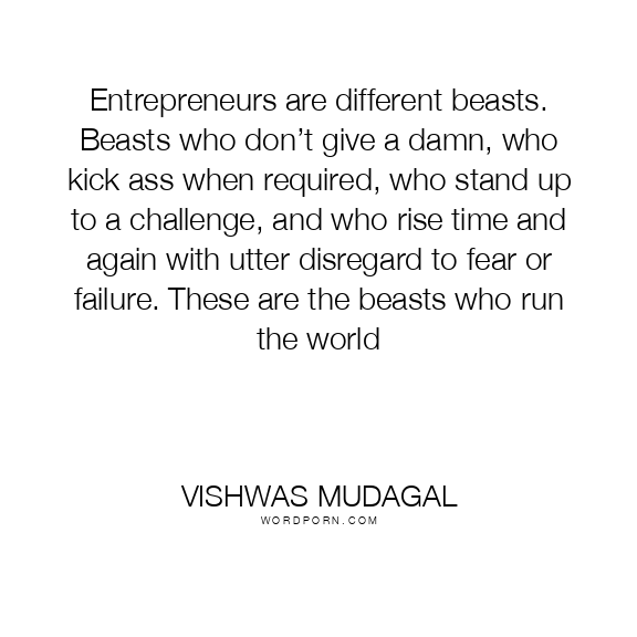 Entrepreneurs are different beasts. Beasts who don’t give a damn, who kick ass when required, who stand up to a challenge, and who rise time and again with utter disregard to fear or failure. These are the beasts who run the world