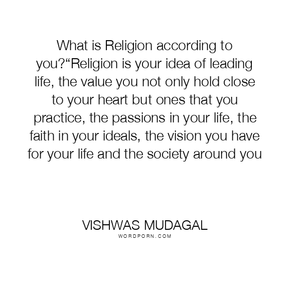 What is Religion according to you?“Religion is your idea of leading life, the value you not only hold close to your heart but ones that you practice, the passions in your life, the faith in your ideals, the vision you have for your life and the society around you