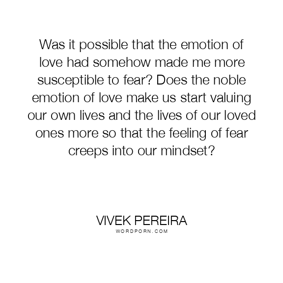 Was it possible that the emotion of love had somehow made me more susceptible to fear? Does the noble emotion of love make us start valuing our own lives and the lives of our loved ones more so that the feeling of fear creeps into our mindset?