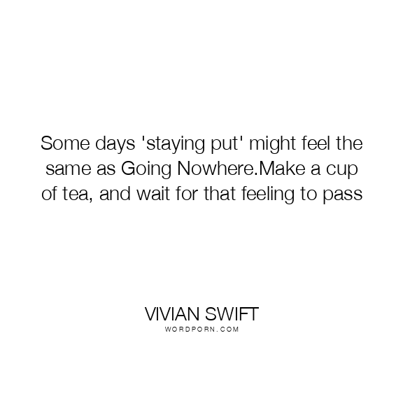 Some days 'staying put' might feel the same as Going Nowhere.Make a cup of tea, and wait for that feeling to pass
