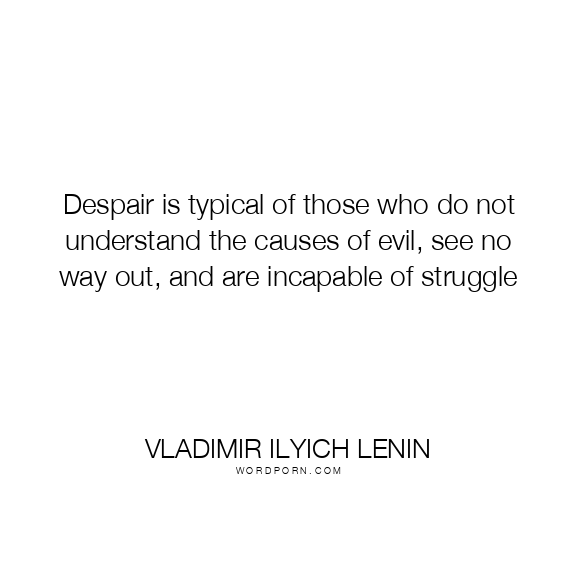 Despair is typical of those who do not understand the causes of evil, see no way out, and are incapable of struggle
