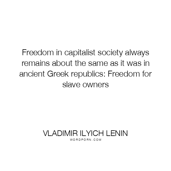 Freedom in capitalist society always remains about the same as it was in ancient Greek republics: Freedom for slave owners