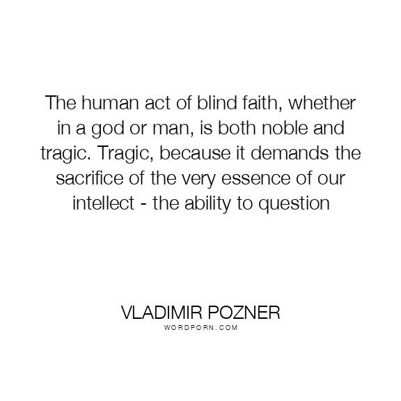 The human act of blind faith, whether in a god or man, is both noble and tragic. Tragic, because it demands the sacrifice of the very essence of our intellect - the ability to question