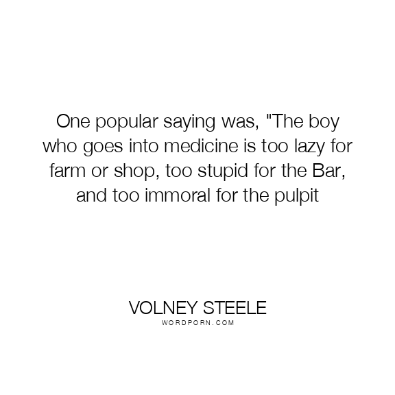 Copy Image One popular saying was, "The boy who goes into medicine is too lazy for farm or shop, too stupid for the Bar, and too immoral for the pulpit Moms Typewriter A A SAVE THIS IMAGE