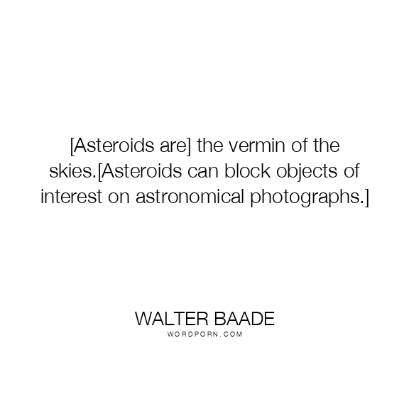 Copy Image [Asteroids are] the vermin of the skies.[Asteroids can block objects of interest on astronomical photographs.] Moms Typewriter A A SAVE THIS IMAGE