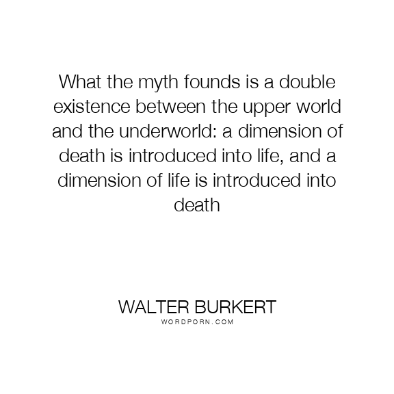What the myth founds is a double existence between the upper world and the underworld: a dimension of death is introduced into life, and a dimension of life is introduced into death