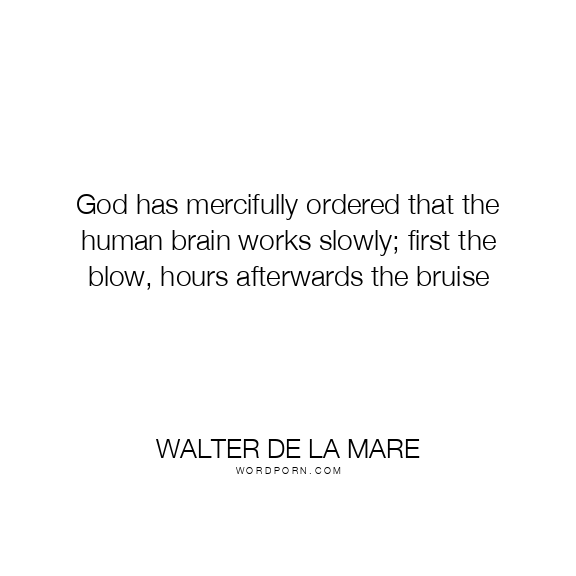 God has mercifully ordered that the human brain works slowly; first the blow, hours afterwards the bruise