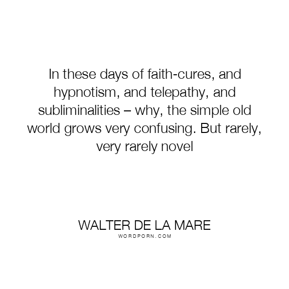 In these days of faith-cures, and hypnotism, and telepathy, and subliminalities – why, the simple old world grows very confusing. But rarely, very rarely novel