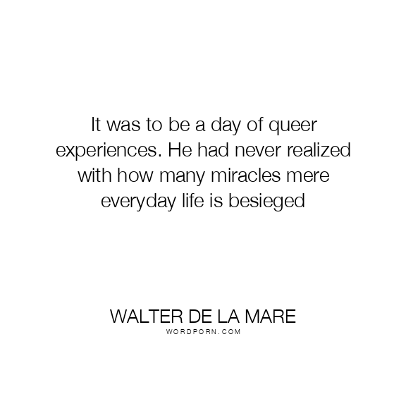 It was to be a day of queer experiences. He had never realized with how many miracles mere everyday life is besieged