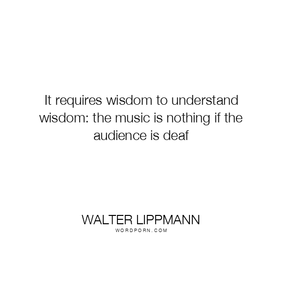 It requires wisdom to understand wisdom: the music is nothing if the audience is deaf