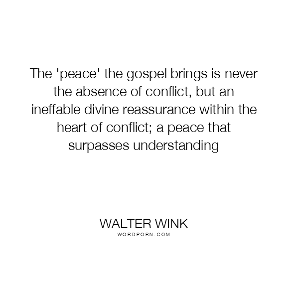 The 'peace' the gospel brings is never the absence of conflict, but an ineffable divine reassurance within the heart of conflict; a peace that surpasses understanding