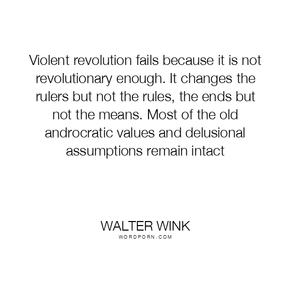 Violent revolution fails because it is not revolutionary enough. It changes the rulers but not the rules, the ends but not the means. Most of the old androcratic values and delusional assumptions remain intact