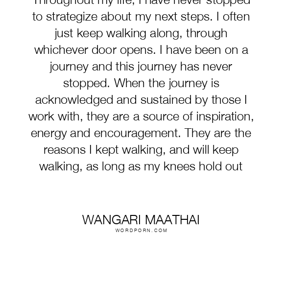 Throughout my life, I have never stopped to strategize about my next steps. I often just keep walking along, through whichever door opens. I have been on a journey and this journey has never stopped. When the journey is acknowledged and sustained by those I work with, they are a source of inspiration, energy and encouragement. They are the reasons I kept walking, and will keep walking, as long as my knees hold out