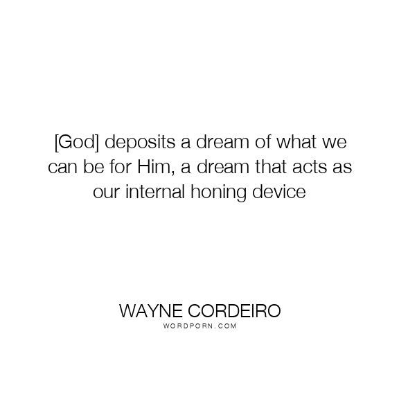 [God] deposits a dream of what we can be for Him, a dream that acts as our internal honing device