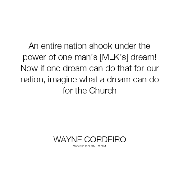An entire nation shook under the power of one man’s [MLK’s] dream! Now if one dream can do that for our nation, imagine what a dream can do for the Church