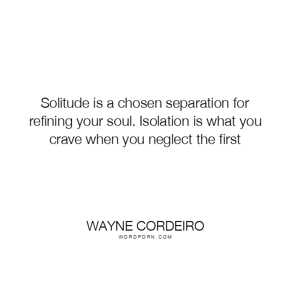 Solitude is a chosen separation for refining your soul. Isolation is what you crave when you neglect the first