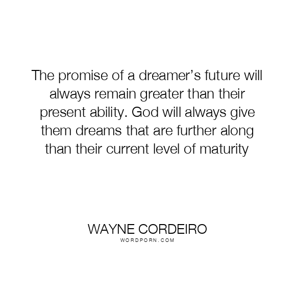 The promise of a dreamer’s future will always remain greater than their present ability. God will always give them dreams that are further along than their current level of maturity