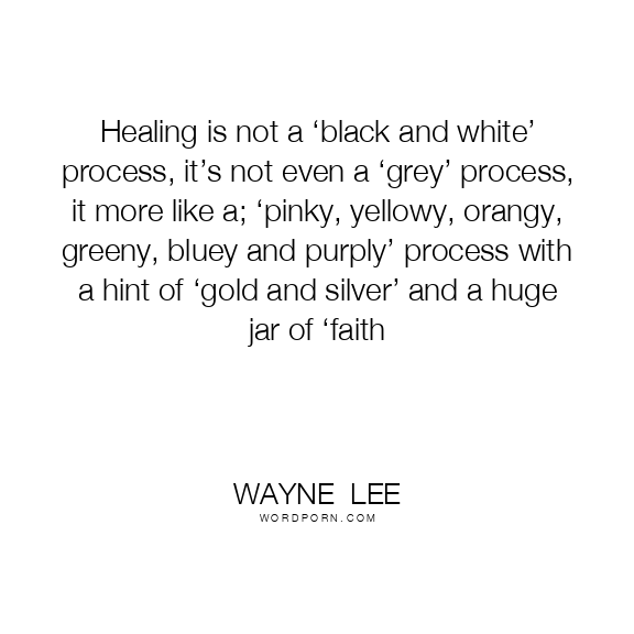 Healing is not a ‘black and white’ process, it’s not even a ‘grey’ process, it more like a; ‘pinky, yellowy, orangy, greeny, bluey and purply’ process with a hint of ‘gold and silver’ and a huge jar of ‘faith