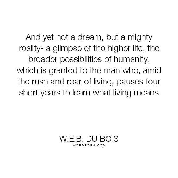 And yet not a dream, but a mighty reality- a glimpse of the higher life, the broader possibilities of humanity, which is granted to the man who, amid the rush and roar of living, pauses four short years to learn what living means