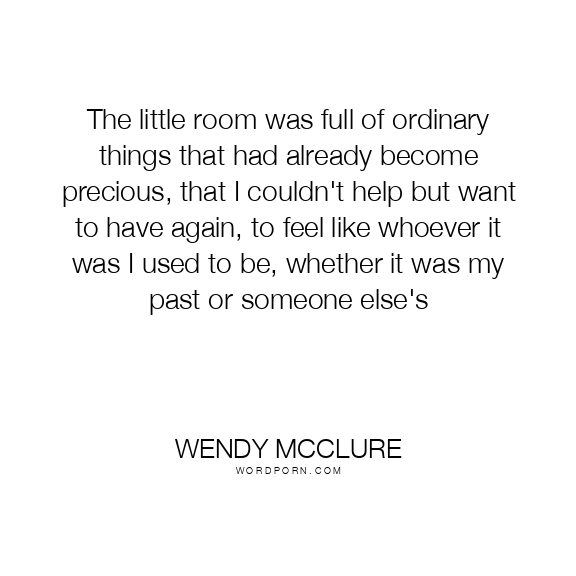 The little room was full of ordinary things that had already become precious, that I couldn't help but want to have again, to feel like whoever it was I used to be, whether it was my past or someone else's