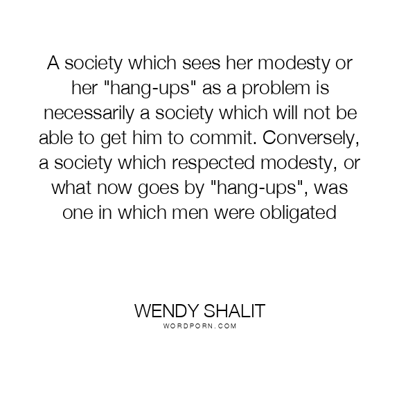 A society which sees her modesty or her "hang-ups" as a problem is necessarily a society which will not be able to get him to commit. Conversely, a society which respected modesty, or what now goes by "hang-ups", was one in which men were obligated