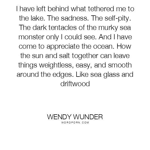 I have left behind what tethered me to the lake. The sadness. The self-pity. The dark tentacles of the murky sea monster only I could see. And I have come to appreciate the ocean. How the sun and salt together can leave things weightless, easy, and smooth around the edges. Like sea glass and driftwood
